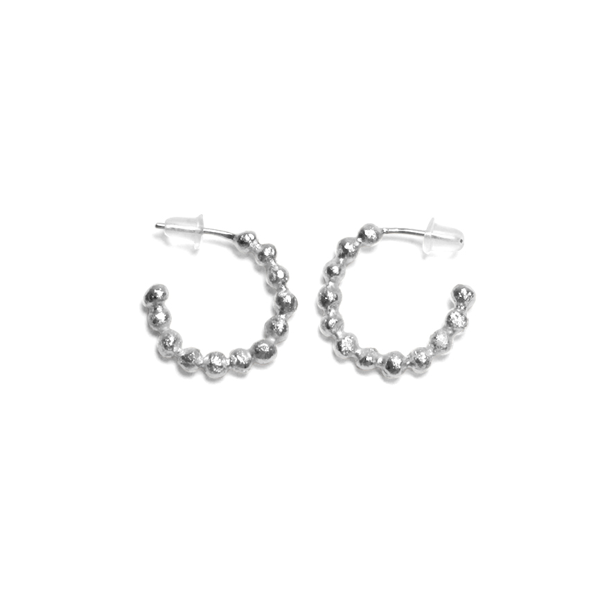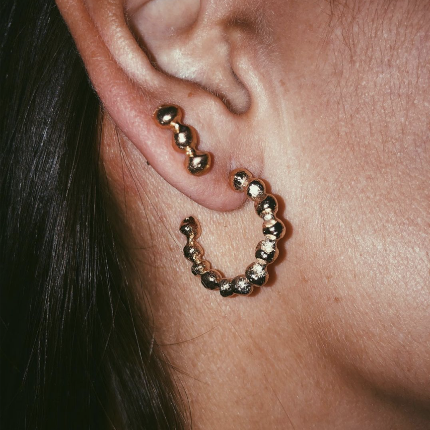 These earrings are made from 12 solid spheres that are not completely regular and may vary slightly from one earring to another, even if they have the same reference.