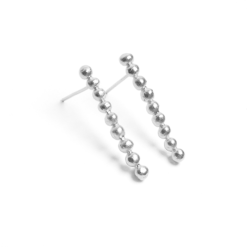 These earrings are made from 9 solid spheres that are not completely regular and may vary slightly from one earring to another, even if they have the same reference.