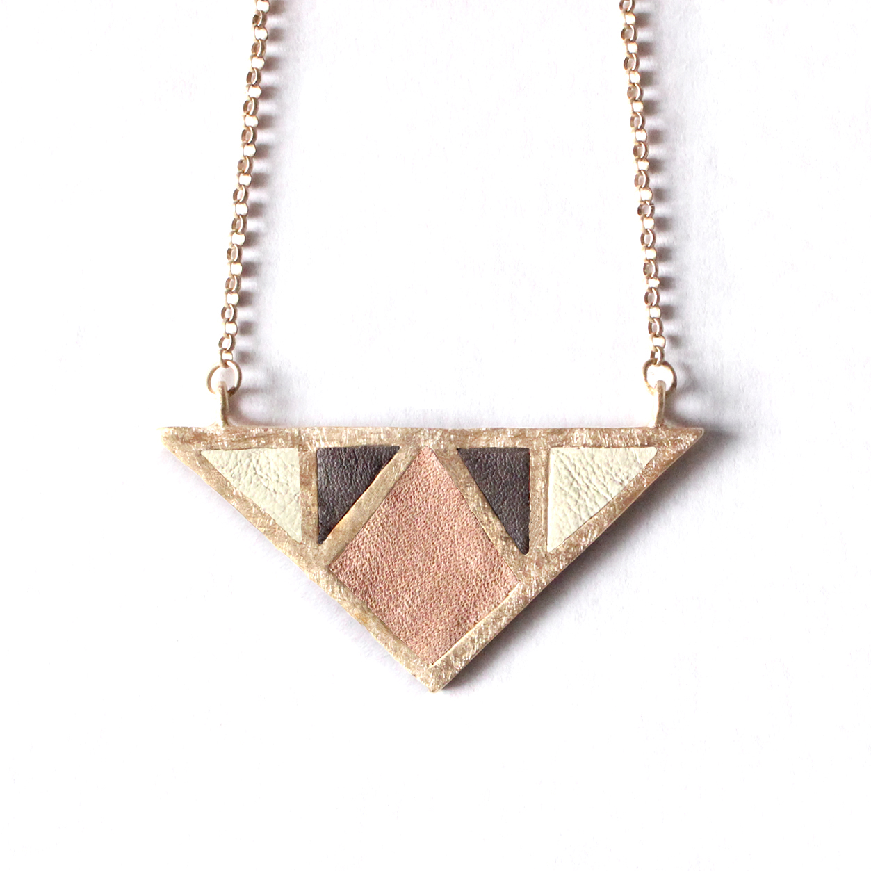 COLLAR GEOMÉTRICO CON PIEL, CHAPADO EN ORO MATE DE 18k. (3 MICRAS)