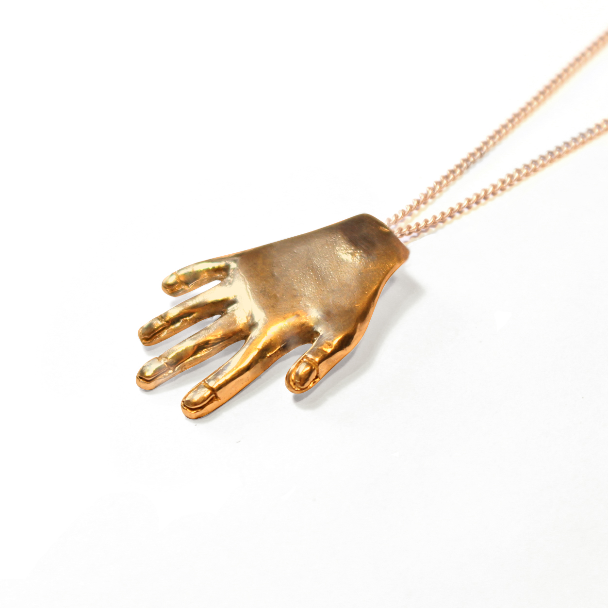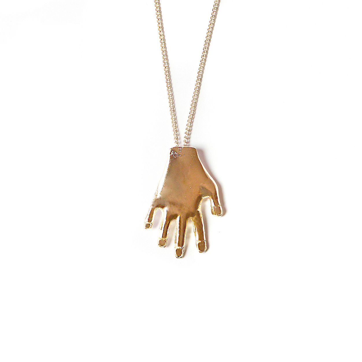18k. POLISHED GOLD PLATED (3 MICRONS) NECKLACE WITH A HAND PIECE.