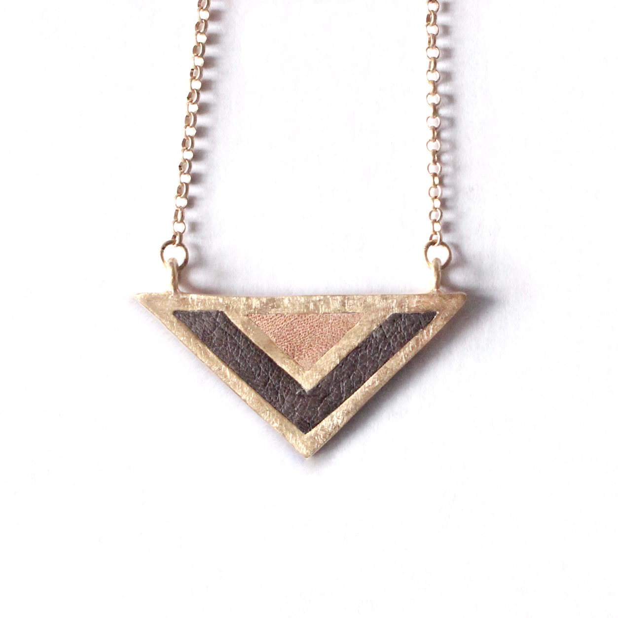 COLLAR GEOMÉTRICO CON PIEL, CHAPADO EN ORO MATE DE 18k. (3 MICRAS)