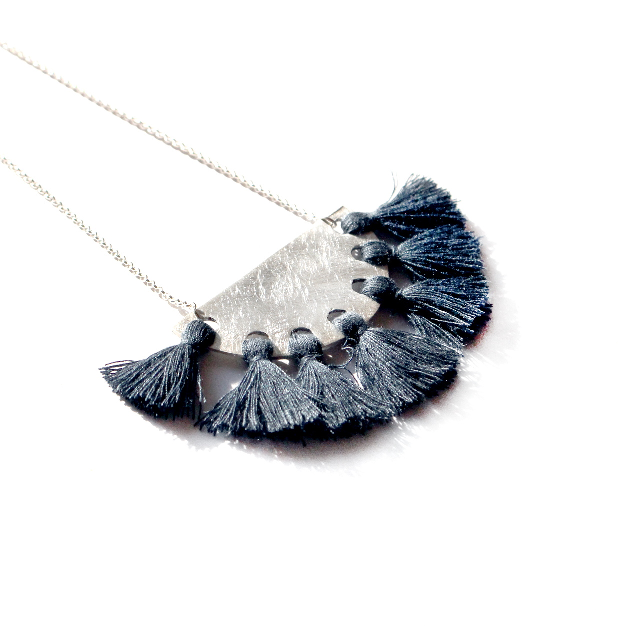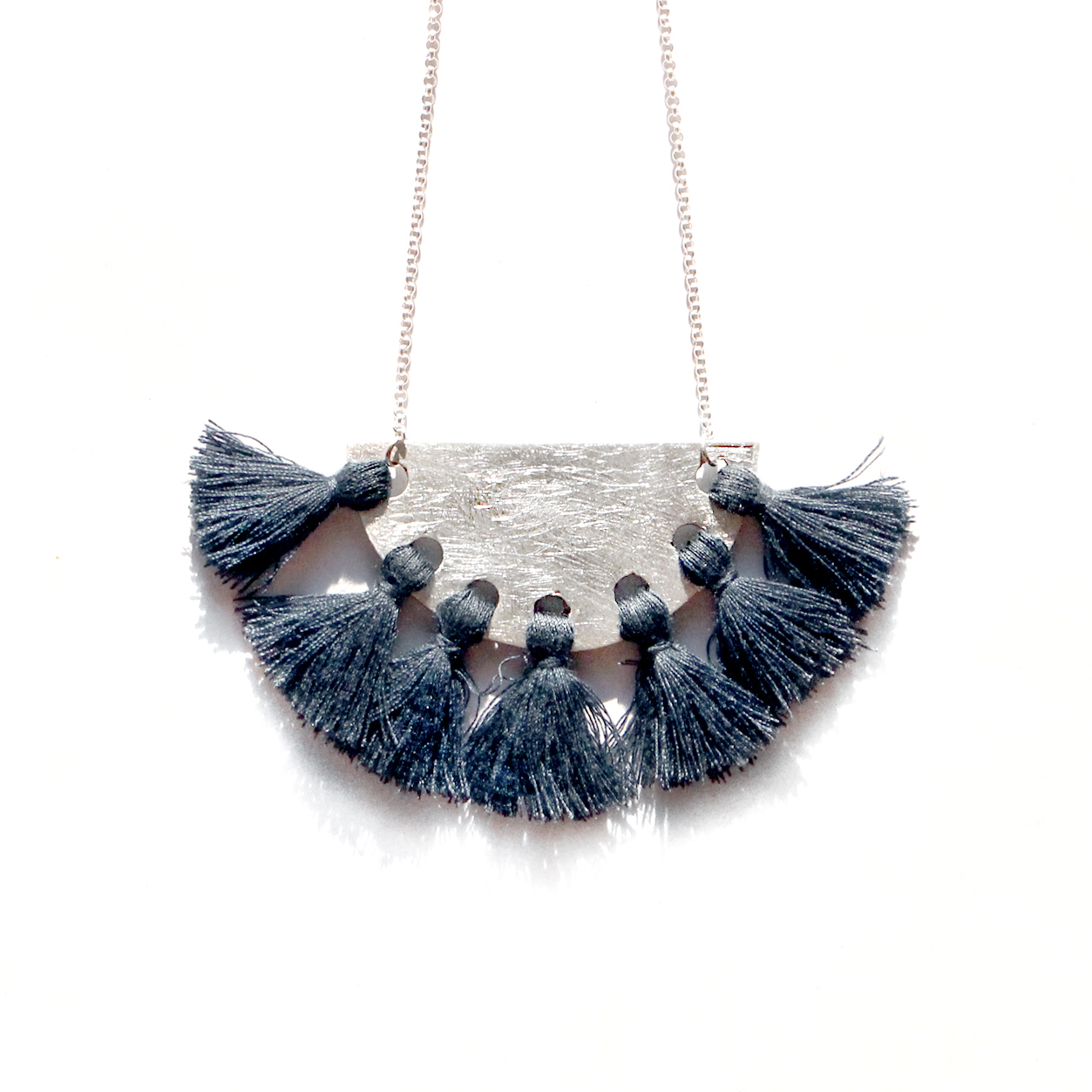MATT SOLID SILVER NECKLACE WITH DEEP BLUE FRINGES