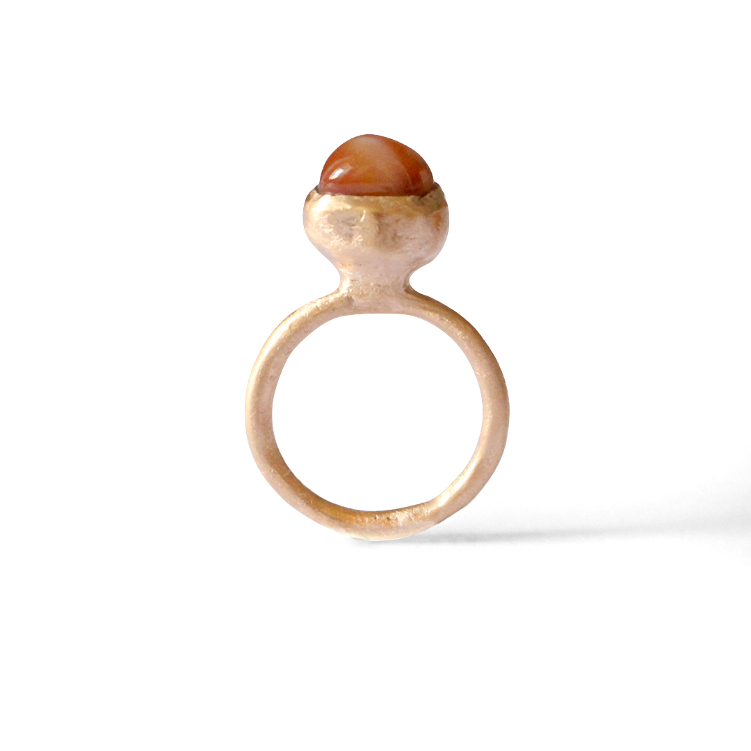 18k. MATT GOLD PLATED (3 MICRONS) RING WITH A AGATE STONE