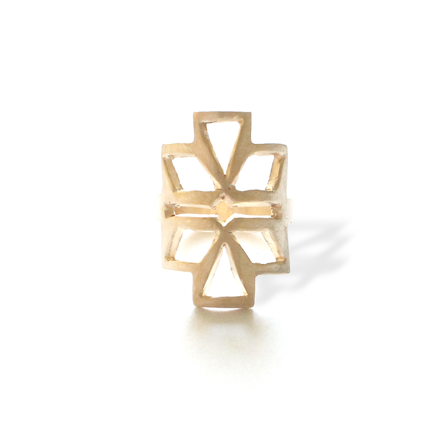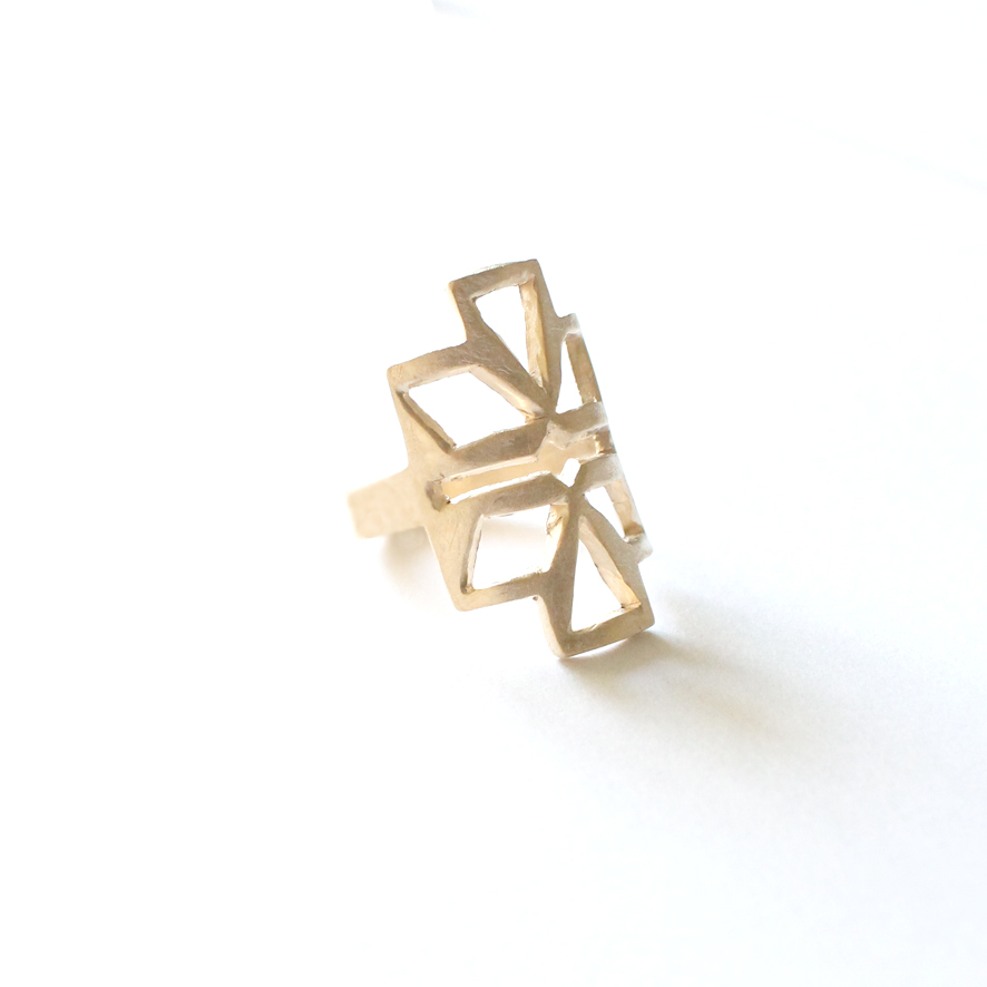 18k. GEOMETRIC MATT GOLD PLATED RING (3 micons)