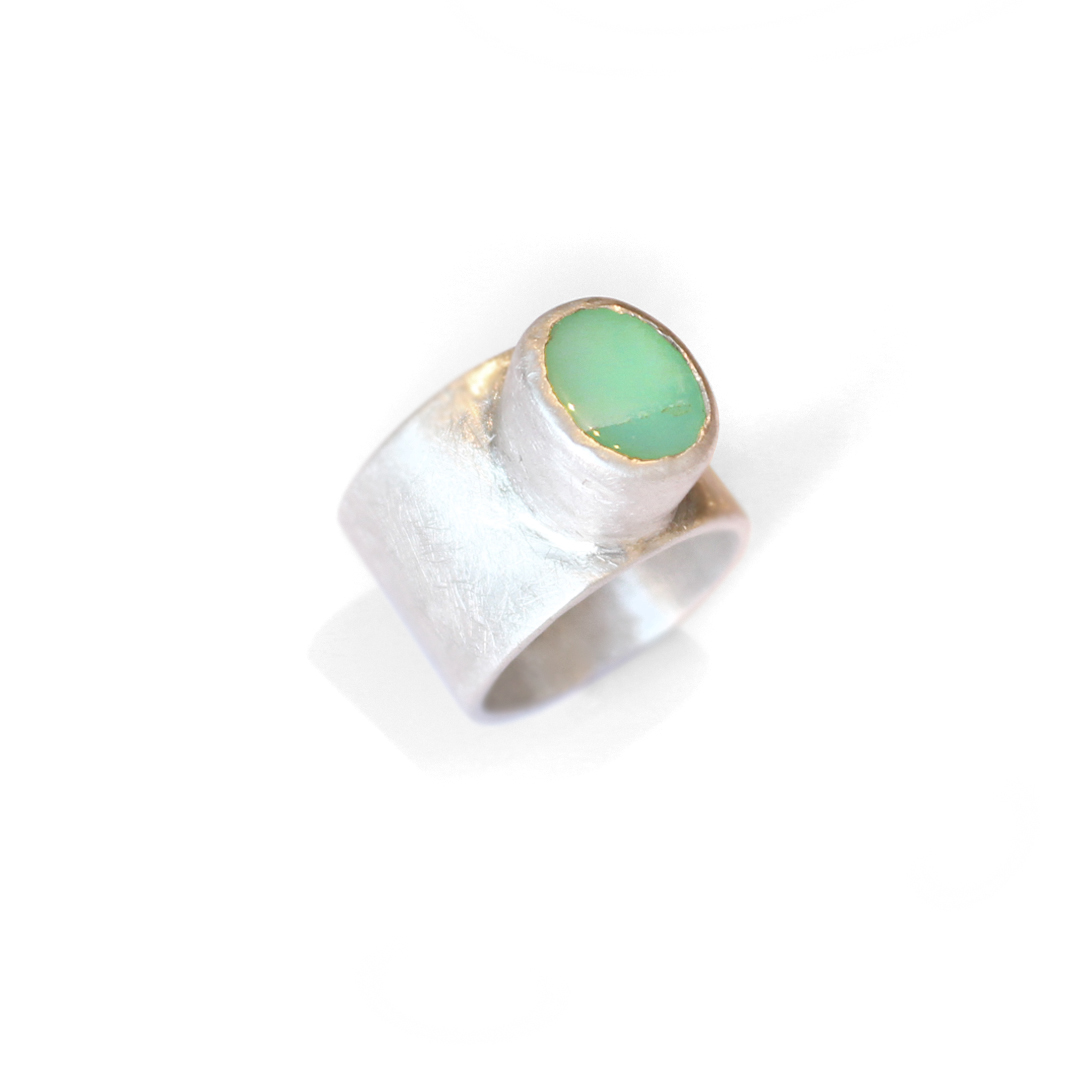 MATT SOLID SILVER RING WITH CRISOPASA STONE