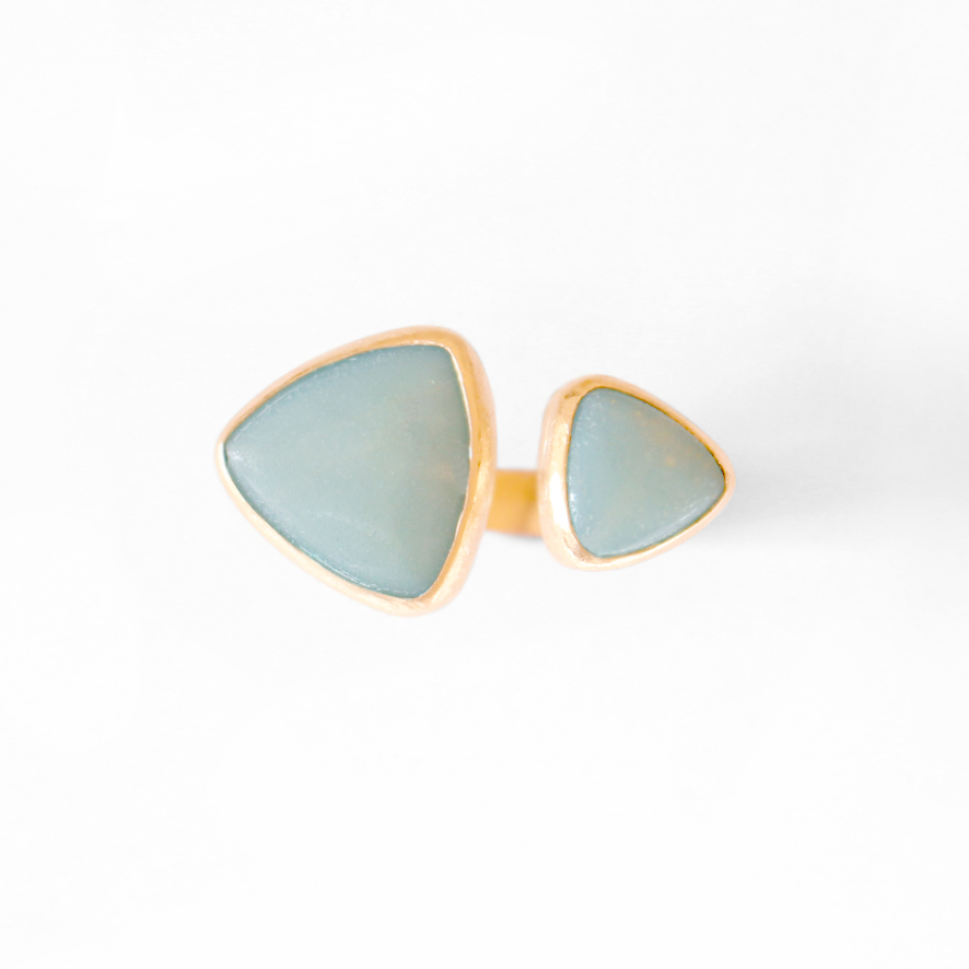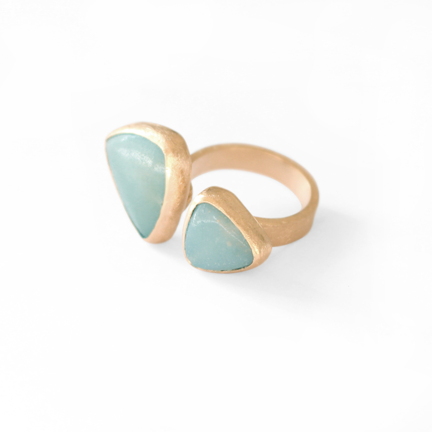 18k. MATT GOLD PLATED (3 MICRONS) RING WITH 2 AMAZONITE STONES
