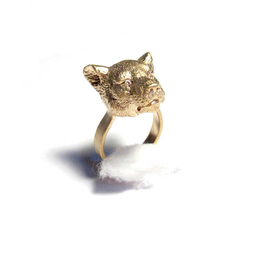 18k. TIGER HEAD MATT GOLD PLATED (3 MICRONS) RING