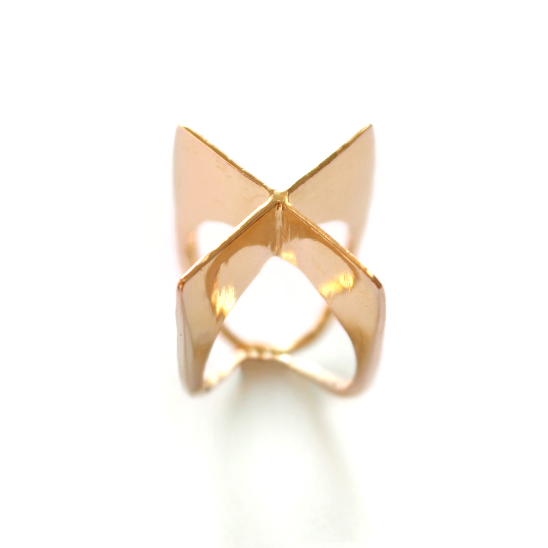 18k. VOLUME X-SHAPED AND POLISHED GOLD PLATED RING (3 micons)